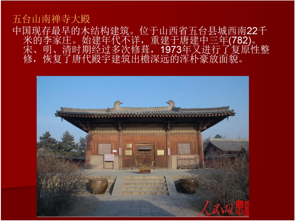 重点掌握木构架的特色、单体建筑的构成、建筑类型