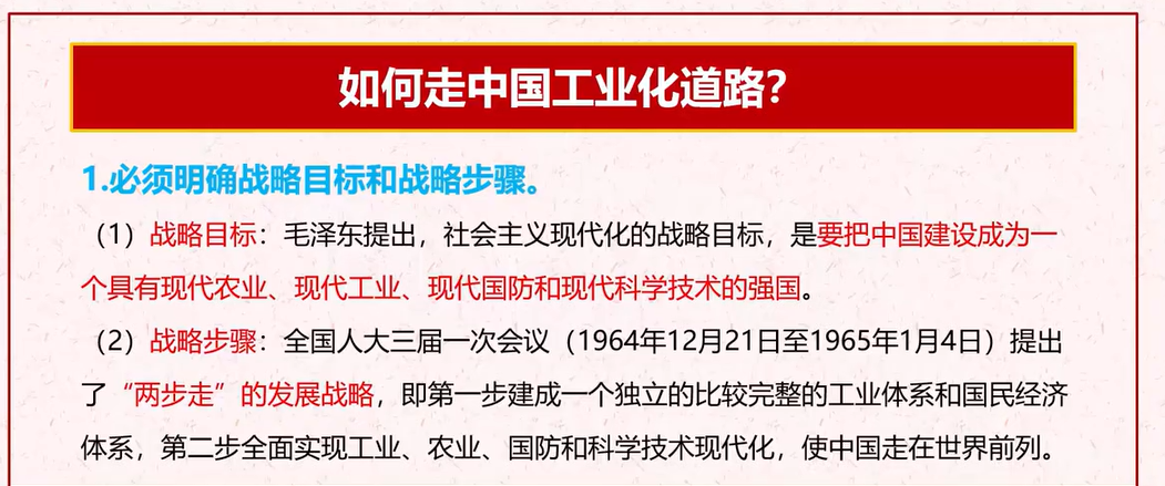 2)实现社会主义工业化,是国家独立和富强的必然要求和必要条件。