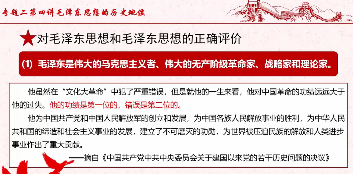 (3)毛泽东思想是中国共产党和中国人民宝贵的精神财富
