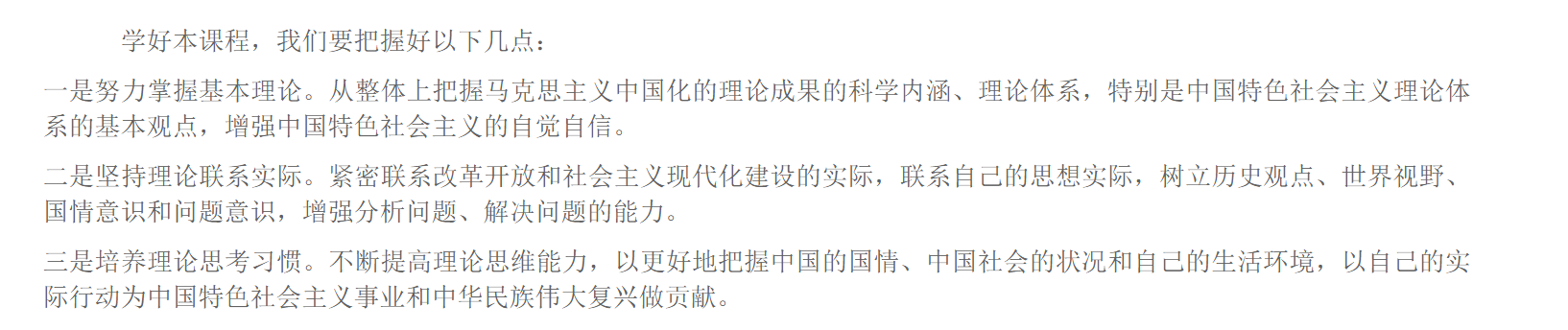 《毛泽东思想和中国特色社会主义理论体系概论》1、本课程的教学目的 2、本课程的主要内容 3、本课程的教材结构 三个方面了解这门课程。